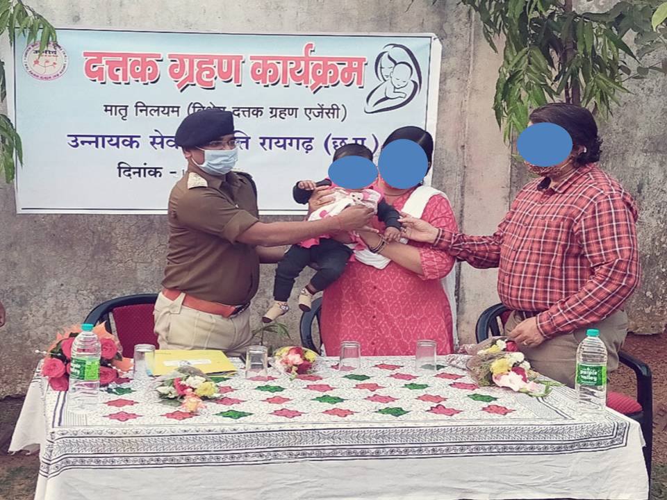 रायगढ़। पुलिस अधीक्षक रायगढ़ उन्नायक सेवा समिति में आज आयोजित दत्तक ग्रहण कार्यक्रम में अतिथि के रूप में पहुंचे । कार्यक्रम में विशाखापट्टनम के नि:संतान दंपत्ति को मातृ नियलम पल रही 01 वर्ष की बालिका को पालन पोषण के लिए अधिकारिक तौर पर सुपुर्द किया गया है।