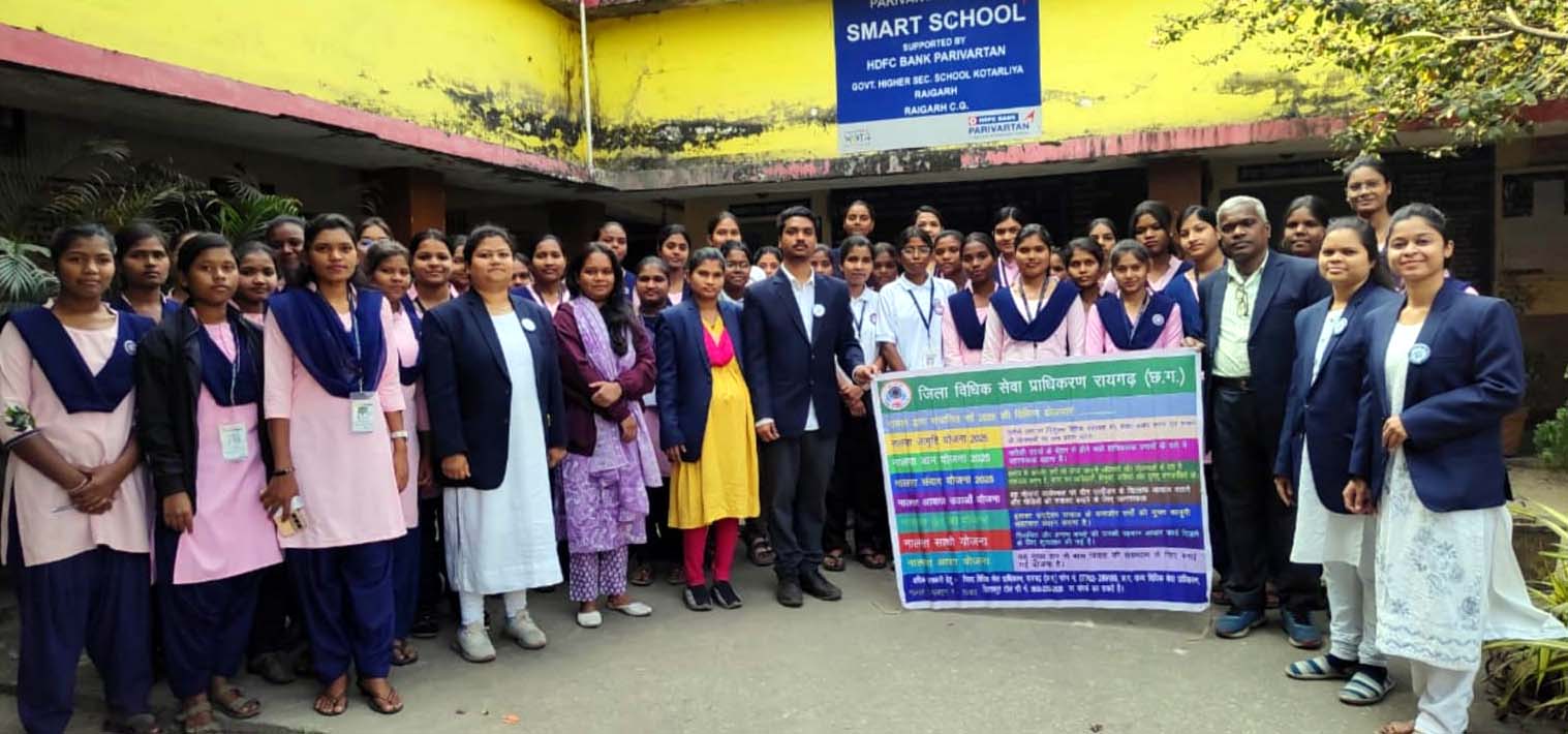 रायगढ़। राष्ट्रीय विधिक सेवा प्राधिकरण नई दिल्ली एवं छ.ग.राज्य विधिक सेवा प्राधिकरण बिलासपुर के तत्वाधान एवं प्रधान जिला एवं सत्र न्यायाधीश एवं अध्यक्ष श्री जितेन्द्र कुमार जैन के निर्देशन में तथा जिला विधिक सेवा प्राधिकरण, रायगढ़ श्रीमती अंकिता मुदलियार न्यायाधीश/सचिव के मार्गदर्शन में राष्ट्रीय बालिका दिवस के अवसर पर शास.उच्च.माध्य.विद्यालय कोतरलिया में आज विधिक जागरूकता शिविर का आयोजन किया गया।