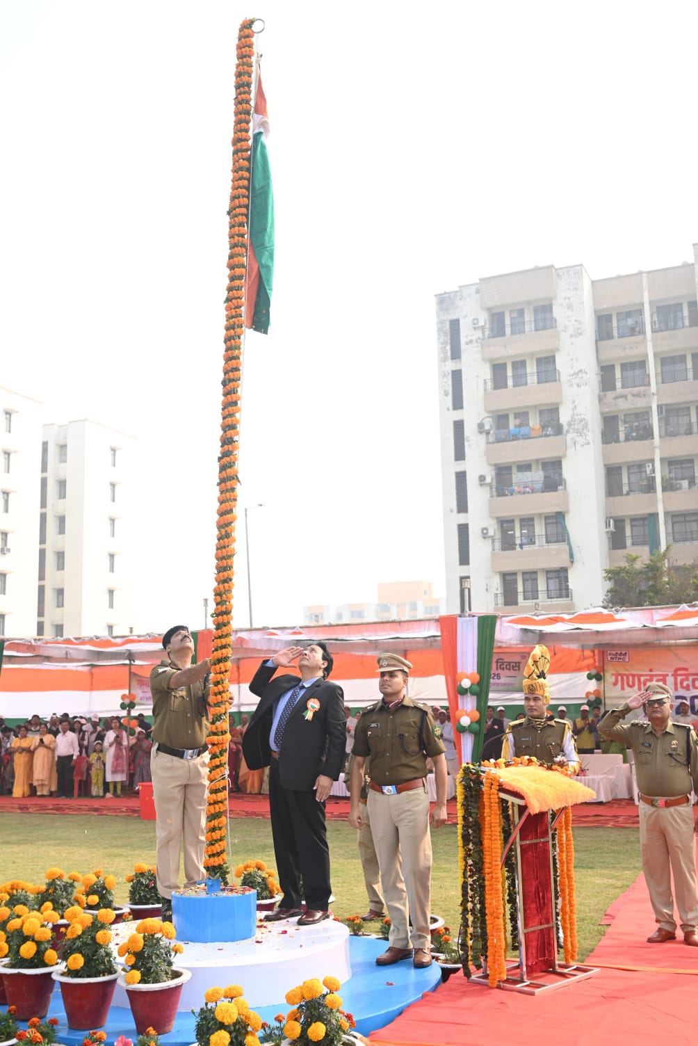 गणतन्त्र दिवस के मौके पर महाप्रबंधक (प्रचालन एवं अनुरक्षण) श्री केशब चन्द्र सिंहा राय द्वारा परियोजना के सेवा भवन में राष्ट्रीय ध्वज फहराया गया एवं बाल भवन में श्रीमती अनुराधा शर्मा, अध्यक्षा, प्रेरिता महिला समिति द्वारा राष्ट्रीय ध्वज फहराया गया।