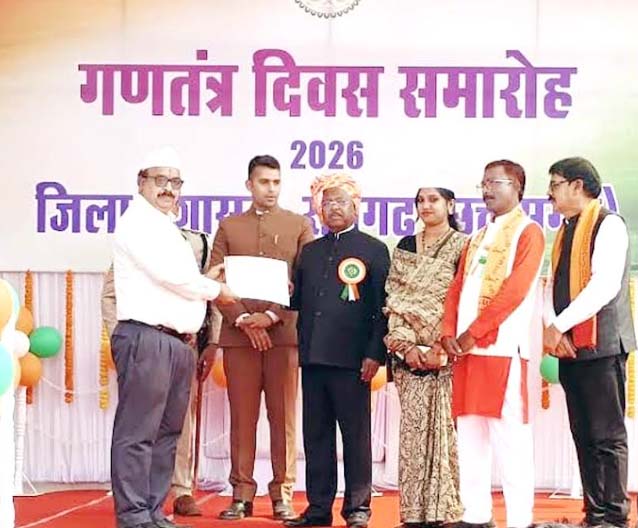 रायगढ़। जिला प्रशासन रायगढ़ ने गणतंत्र दिवस समारोह 2026 के अवसर पर मिनी स्टेडियम में आयोजित भव्य कार्यक्रम में विभिन्न सामाजिक संस्थाओं के सक्रिय पदाधिकारी बाबूलाल अग्रवाल एडवोकेट को प्रशस्ति पत्र से सम्मानित किया। प्रशस्ति पत्र छत्तीसगढ़ शासन के कृषि मंत्री राम विचार नेताम के द्वारा प्रदान किया गया। इस अवसर पर कलेक्टर रायगढ़ मयंक चतुर्वेदी, वरिष्ठ पुलिस अधीक्षक शशि मोहन सिंह, महापौर जीर्वधन चैहान, जिला पंचायत अध्यक्ष श्रीमती शिखा रविन्द्र गबेल एवं सभापति डिग्रीलाल साहू मंच पर उपस्थित थे।
