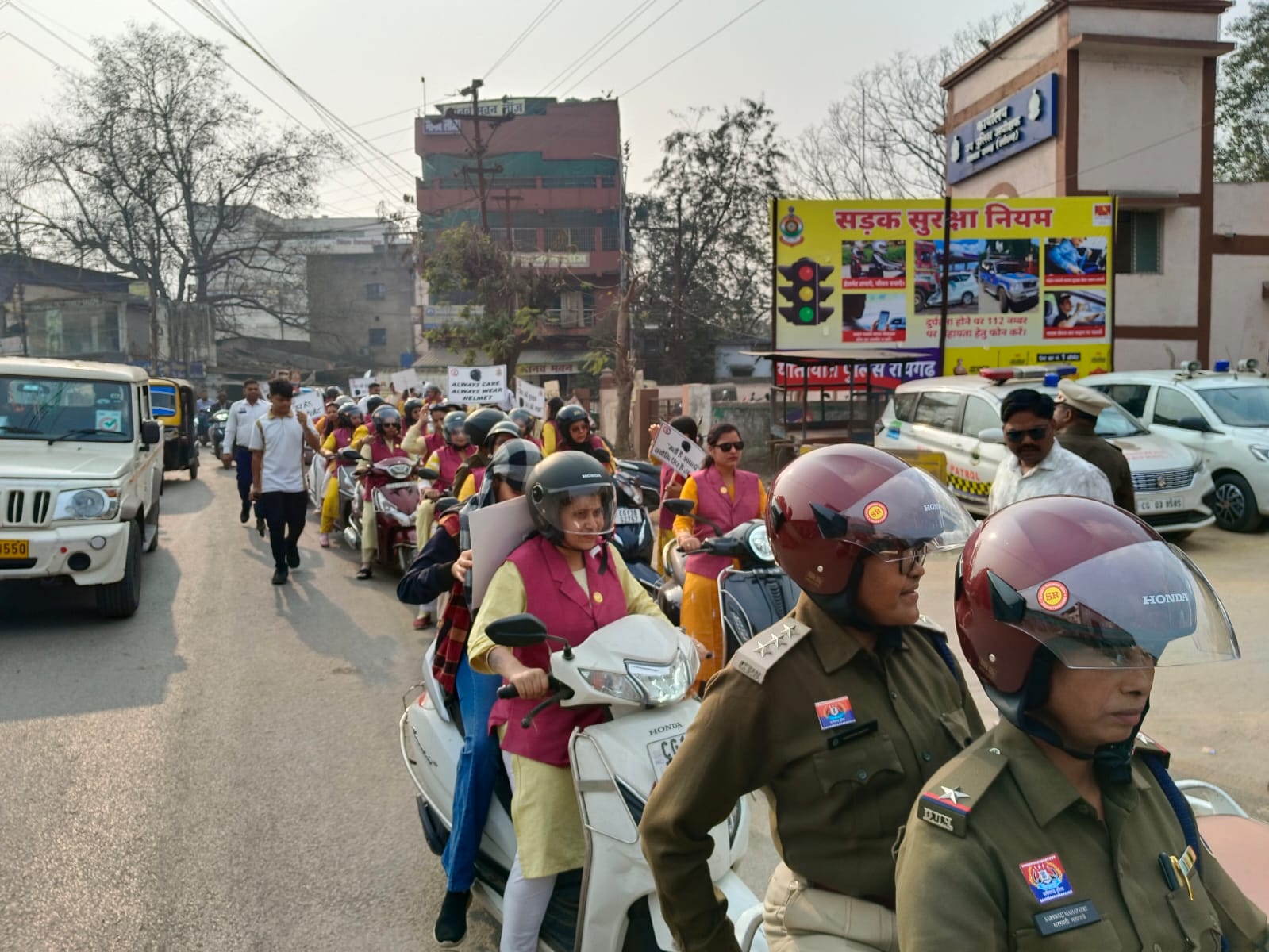 रैली के दौरान महिला पुलिस अधिकारी-कर्मचारी, “दिव्य शक्ति रायगढ़” की सदस्याएं सहित बड़ी संख्या में नागरिक उपस्थित रहे, जिन्होंने हेलमेट लगाने व यातायात नियमों के पालन का संकल्प लिया।