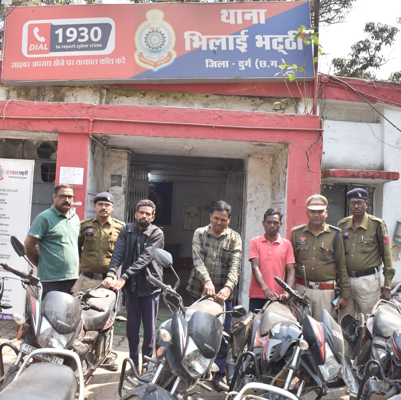 भिलाई-दुर्ग क्षेत्र में लगातार हो रही दोपहिया वाहन चोरी की घटनाओं का विश्लेषण कर संगठित गिरोह का पर्दाफाश किया गया।
