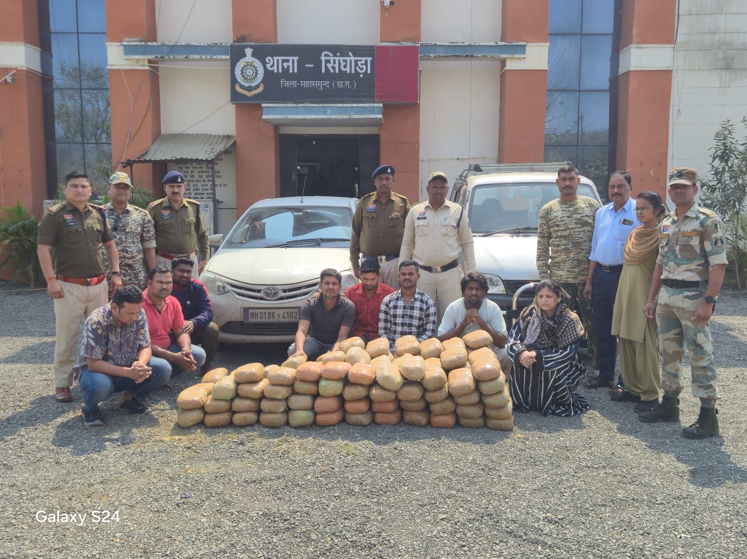 एन्टी नारकोटिक टाॅस्क फोर्स एवं महासमुंद पुलिस के द्वारा लगातार चेंकिंग कार्यवाही की जा रही है, इसी दरमियान सूचना मिली की एक मारूती सुजुकी ईको कार क्रमांक OD19T6003 एवं उसके पीछे एक टोयटा कार क्रमांक MH01BK4102 में उडिसा की ओर से अवैघ मादक पदार्थ गांजा लेकर आ रहे है कि सूचना से एनएच 53 रोड रेहटीखोल पहूंच कर नाकाबंदी किये जहां कुछ समय बाद एक मारूती सुजुकी ईको कार क्रमांक OD19T6003 में बैठे 4 पुरुष एवं 1 महिला से पूछताछ करने पर टोयटा कार क्रमांक MH01BK4102 का पायलेटिंग करते आना बताये तब टोयटा कार क्रमांक एम एच 01 बी के 4102 को रोकने पर 3 व्यक्ति वाहन में थे पूछताछ करने पर वाहन के डिक्की एवं पीछे सीट में प्लास्टिक बोरी के अंदर गांजा रखना बताये एवं उक्त गांजा को अंगुल उडिसा से अकोला (महाराष्ट्र) ले जाना बताये । तथा जिस पर विधिसम्मत कार्यवाही करते हुए आरोपियों से 137 किग्रा अवैध मादक पदार्थ गांजा कीमती 68 लाख 50 हजार रुपये जब्त किया गया। आरोपियो का कृत्य अपराध धारा 20बी (दो)(सी), 29 -1) एनडीपीएस एक्ट का पाये जाने से 8 आरोपियो को विधिवत गिर० किया जाकर थाना सिंघोड़ा में अपराध कायम कर विवेचना में लिया गया है। यह सम्पूर्ण कार्यवाही एन्टी नारकोटिक टाॅस्क फोर्स एवं थाना सिंघोड़ा पुलिस की टीम के द्वारा की गई।
