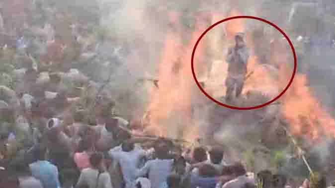 जब उसके परिजन जौ भून रहे थे तभी वीरपाल खड़े होकर देख रहा था। अचानक उसने हाथ जोड़े और जलती हुई होलिका पर चढ़कर आग की लपटों के बीच खड़ा हो गया। यह देखकर मौके पर मौजूद लोग दंग रह गए और बचाव के लिए चिल्लाने लगे।