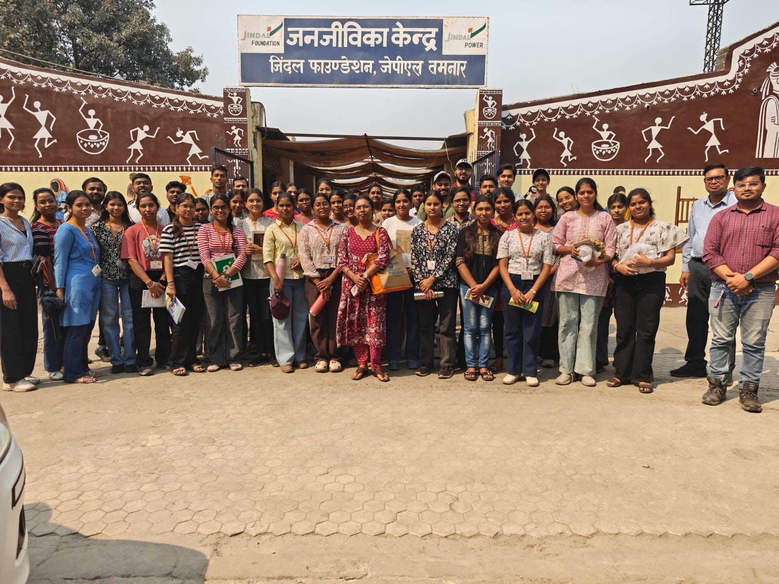 तमनार में जनजीविका केंद्र का संचालन जिंदल फाउंडेशन जिंदल पावर लिमिटेड तमनार के सीएसआर एक्टिविटी के तहत किया जा रहा है। इस केंद्र का भ्रमण करने व यहां हो रही गतिविधियों को समझने के लिए ओपी जिंदल यूनिवर्सिटी रायगढ़ के बायो टेक विभाग के 38 छात्र-छात्राएं केंद्र पहुंचे थे। सुरेश डनसेना द्वारा केंद्र का भ्रमण कराया गया और केंद्र में होने वाले कृषि व अन्य गतिविधियों की विस्तृत जानकारी दी गई। उन्होंने मिलेट्स, रागी, कोदो, कुटकी आदि के बारे में बताया। साथ ही महिला समूहों द्वारा संचालित बेकरी यूनिट में बनाए जा रहे नमकीन, मिक्सचर, कुकीज व अन्य खाद्य पदार्थों की जानकारी भी विद्यार्थियों को दी गई। संतोष शर्मा द्वारा विद्यार्थियों को स्व सहायता समूह द्वारा संचालित मशरूम यूनिट का भ्रमण कराते हुए मशरूम उत्पादन व स्पॉन बनाने की प्रक्रिया की जानकारी दी गई। विद्यार्थियों को यहां उनके पाठ्यक्रम से हटकर नई जानकारी मिली। विद्यार्थियों ने यहां बनाए गए टेराकोटा का सामान और बेकरी आइटम भी खरीदा।