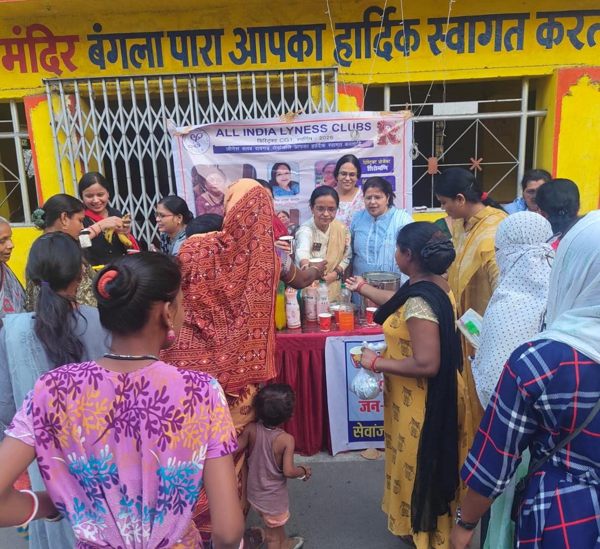 चार्टर डे के उपलक्ष में सेवांजली क्लब रायगढ़ ने वर्तमान में शहर और पूरे अंचल में तेज गर्मी के कारण सड़कों पर परेशान और प्यासे राहगीरों को इस परेशानी से राहत पहुंचाने के उदेश्य से क्लब के सभी सदस्यों द्वारा चक्रधर नगर बंगलापारा हनुमान मंदिर प्रांगण के सामने के मार्ग में स्टॉल लगाकर घर से बनाकर लाए स्वादिष्ट आम पना, लस्सी, छाछ, शर्बत एवं नीबू पानी का वितरण किया गया । जिसमें रोड पर निकलने वाले राहगीरों और वाहनों को रोककर सभी को स्वादिष्ट शर्बत वितरण किया गया । मंदिर में भजन करने आयी महिलाओं को भी सेवांजली सदस्यों ने शर्बत वितरण कर आशीर्वाद प्राप्त किया । इसके साथ ही सेवांजली ने जरूरत मंद राहगीरों को गर्मी से बचाव व शीतल पेय जल के लिए मटकों का भी वितरण किया ।