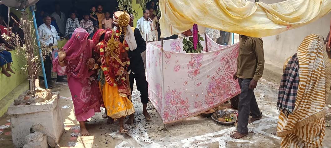 रायगढ़ जिला मुख्यालय से तकरीबन 20 किलोमीटर दूर स्थित बिलासपुर गांव में अनोखी शादी की परंपरा पिछले कई दशकों से चली आ रही है। घर के मुखिया महेत्तर राठिया ने बताया कि जयप्रकाश राठिया घर का सबसे छोटा लड़का है, उसके बड़े भाई के अलावा तीन बहनों की शादी हो चुकी है। उन्होंने बताया कि राठिया परिवार के गंधेल गोत्र के लोग जब शादी करके दुल्हन घर लाते हैं, तब घर के देवी देवताओं की पूजा अर्चना करके शादी के लिये सजाए गए मंडप में अंगारा बिछाकर दुल्हा – दुल्हन के अलावा परिवार के अन्य सदस्य नंगे पांव चलकर इस परंपरा को निभाते आ रहे हैं। उन्होंने बताया कि दुल्हन घर से विदाई के बाद से दुल्हा – दुल्हन के अलावा परिवार के कुछ सदस्यों का उपवास शुरू हो जाता है, इस दौरान वे लोग पानी तक ग्रहण नही करते। इस शादी को देखने गांव के लोगों के अलावा दूसरे गांव से भी लोग भारी संख्या में पहुंचते हैं।