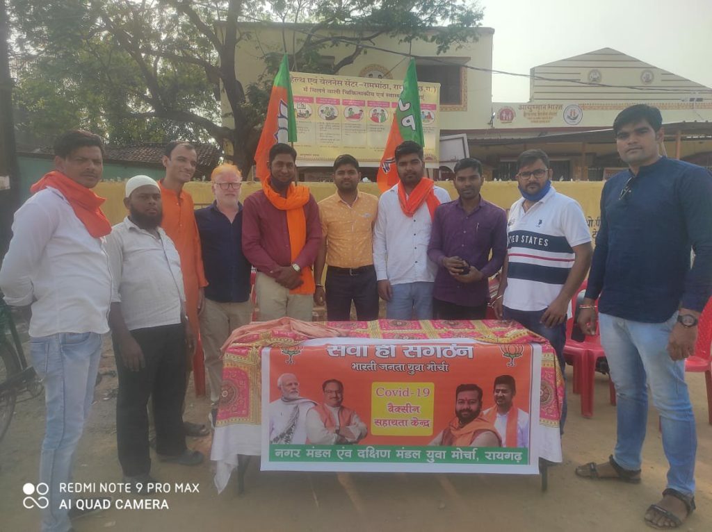 रायगड़-विश्व का सबसे बड़ा टीकाकरण अभियान देश के प्रधानमंत्री जी के मार्गदर्शन एवं प्रेरणा से पूरे देश मे आगे बढ़ रहा है।प्रधानमंत्री जी ने पूर्ण स्वदेशी कोवेक्सिन का टीका लगवाकर देश के वैज्ञानिकों का सम्मान बढ़ाया है।कोरोना महामारी ने पूरे विश्व के सामने कई चुनौती खड़ी कर दी है परंतु देश के प्रधानमंत्री ने जिस धैर्य एवं संयम का परिचय इस विषय मे दिखाया है उसकी प्रशंसा आज पूरे विश्व मे हो रही है।स्वस्थ समाज के निर्माण में भारतीय जनता पार्टी का कार्यकर्ता कोरोना टीकाकरण अभियान में मोदी जी के संकल्प को साकार करने हेतु दृढ़ संकल्पित है।आज इसी तारतम्य में प्रदेश युवा मोर्चा के निर्देश पर नगर मंडल एवं दक्षिण मंडल के युवा मोर्चा अध्यक्षों के नेतृत्व में कोविड वेक्सीन सेंटर रामभांठा के आगे हेल्प डेस्क लगाकर कोविड टीकाकरण अभियान में सहयोगी बने।आज के कार्यक्रम में प्रदेश युवा मोर्चा के कार्यसमिति सदस्य सुमित शर्मा,युवा मोर्चा नगर मंडल के अध्यक्ष मितेश शर्मा,नगर दक्षिण मंडल के अध्यक्ष शैलेश माली ,ऐश अग्रवाल,बबलू गुप्ता,जिम्मी अग्रवाल,परितोष शुक्ला,मोहम्मद इकरार,कुंदन दीवान,अविनाश चौहान,विक्रम दास, रितेश जैन उपस्थित रहे।